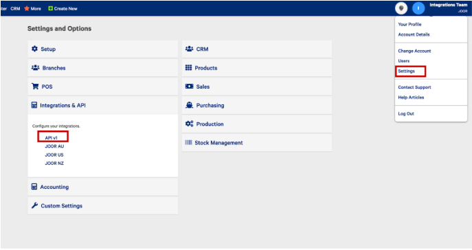 These steps will guide you through creating an API token and username in Cin7 and configuring the correct permissions for the JOOR built Cin7 integration.