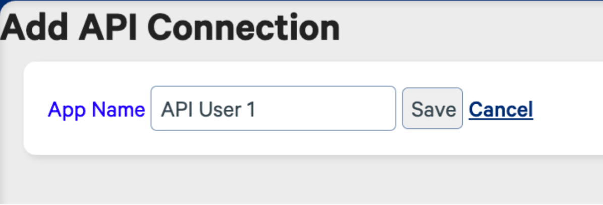 If there is no existing token, click Add New API Connection. Enter any name for the API name and click Save.