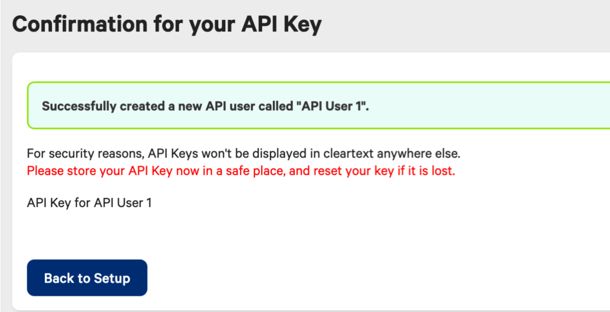 The next page will provide the API token, which you will need to copy to provide us. You will also want to store the token in a safe space in case you need it at a later time.